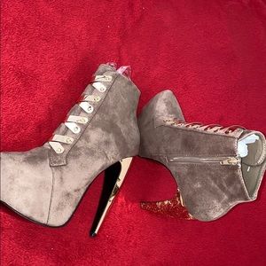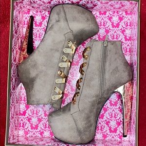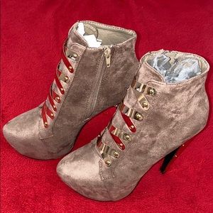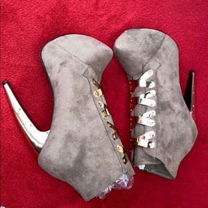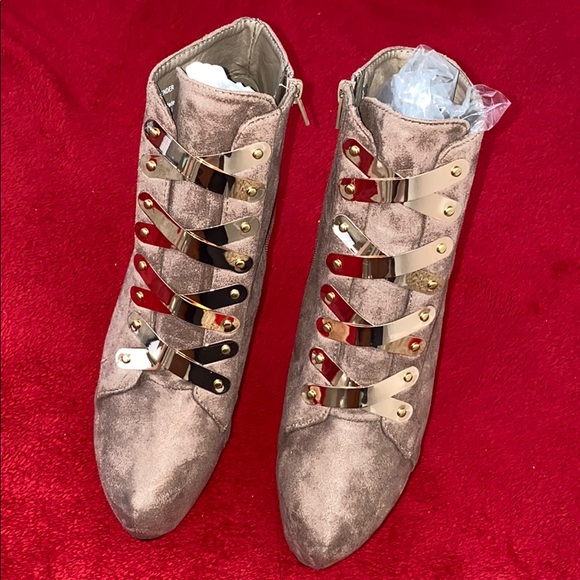 Never worn Surrender PRIVILEGED taupe synthetic upper and edgy gold hardware.
