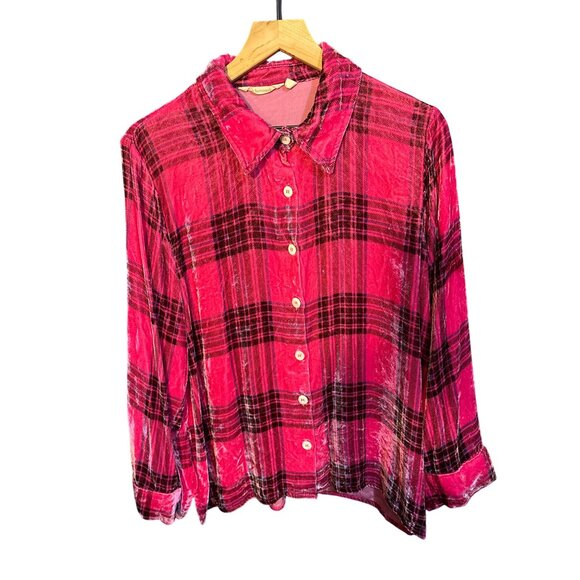 Surroundings Womens Pink Plaid Button-Up Shirt PL Velvet Long Sleeve