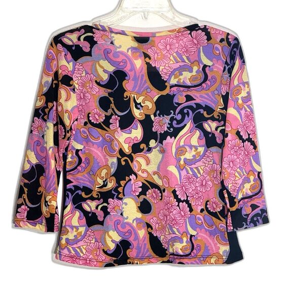 Surya Blouse Top 3/4 Sleeve Floral Embellished Multicolor Stretch Mesh S