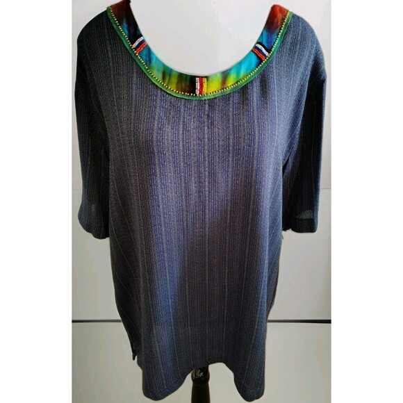 Surya II Blouse Size XL Purple Beaded Neckline Short Sleeve Rayon