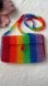 Rainbow beaded crossbody bag with hook-and-eye rose closure. Foldover top.