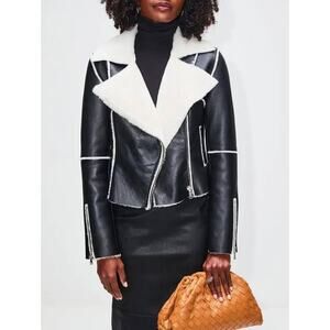 Susan Bender Shearling Biker Jacket in Black & Ivory 12