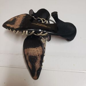 Susan Bennis Crisscross Pointed Toe Black & Champagne Size 7 PO-F Made in Italy