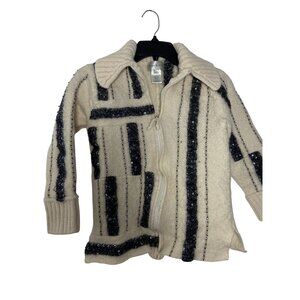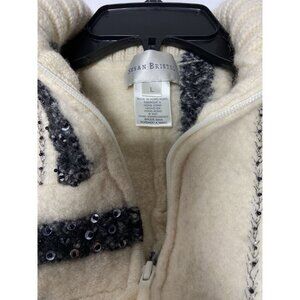 Susan Bristol 100% Wool Blend Hand Embroidered Sequin Zip-Up Cardigan Sweater Gi