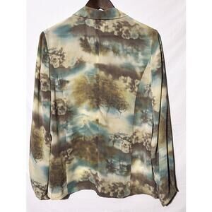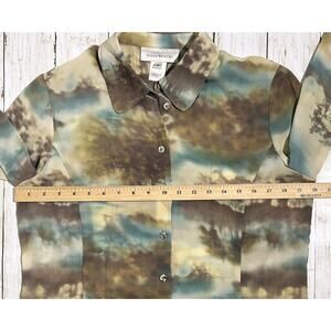 Susan Bristol Abstract Print Sheer Long Sleeve Shirt Medium