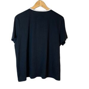Susan Bristol Black Cotton White Floral Design Scoop Neck SS T-Shirt Size XL
