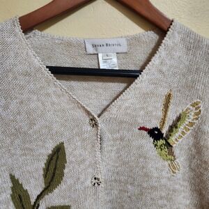 Susan Bristol Cardigan Sweater Womens L Floral Hummingbird Embroidered Knit