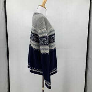 Susan Bristol Cardigan Womens M Medium Grey Navy Fair Isle Wool Metal Clasps