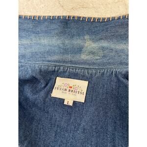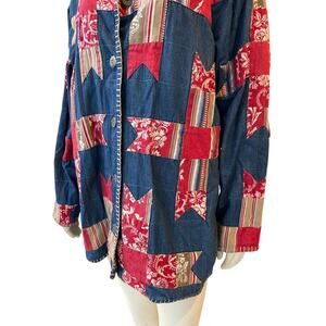 Susan Bristol Chambray Denim Quilted Barn Jacket Large Blue Red