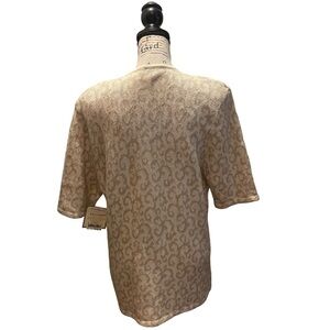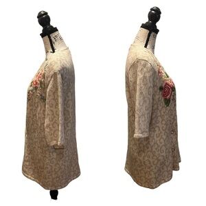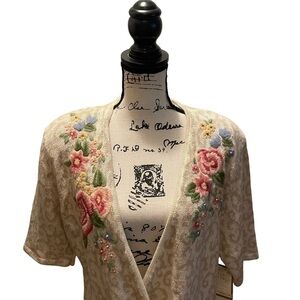 Susan Bristol Hand Embroidered Cardigan Sweater Beige Pink Floral Large NWT Vtg