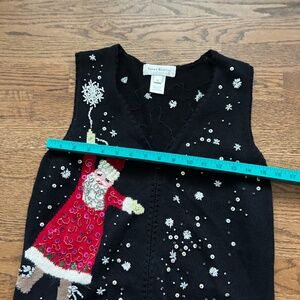 Very nice full zip sweater vest. Sequins, and other embellishments make this vest special and perfect for your Holiday season.