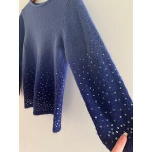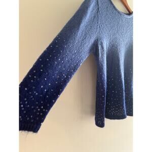 Susan Bristol Mohair Boat Neck Sweater Cocktail Blue Ombre Sequins Size Small JL