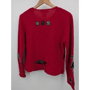 Susan Bristol Red Knit Animal Appliqué Cardigan Sweater Size S 2000 Vintage