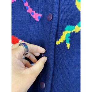 Susan Bristol Short Sleeve Bow Sweater Cardigan Hand Embroidered Vtg Medium