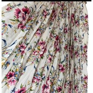 This vintage skirt from Susan Bristol is a stunning addition to any cottagecore or ethnic/peasant outfit. The floral print and pleated design add a touch of elegance to this midi skirt, while the rayon material ensures comfort and breathability. The skirt has pockets and is a size 4, with a waist size of 27 Perfect for casual occasions, this skirt is a must-have for any vintage clothing enthusiast. The waist to hem length is 34 inches, making it a great choice for any height.