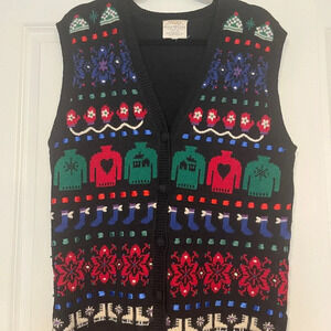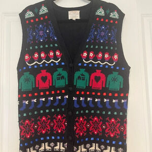 Susan Bristol Sz L Hand Knit Hand Embroidered Christmas Vest