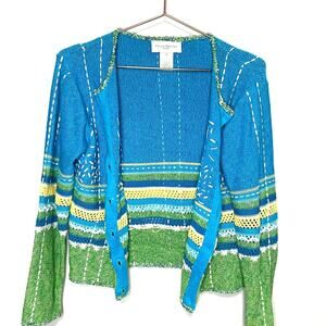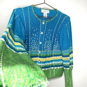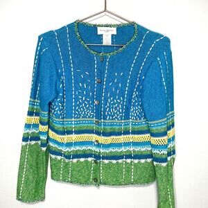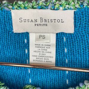 Susan Bristol Vintage 2001 Hand Embroidered Spring Daisy Blue Green Button Up PS