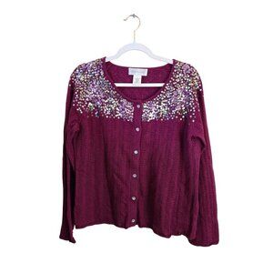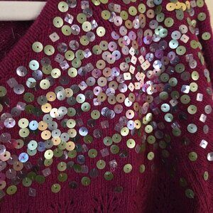 Susan Bristol Vintage Burgundy Open Knit Sequined Cardigan Sweater Size L