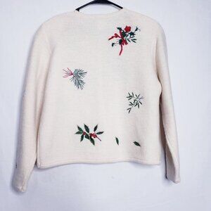 Susan Bristol Vintage Cream Holiday Embroidered Wool Cardigan Womens Size Medium