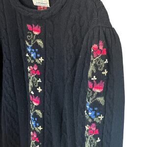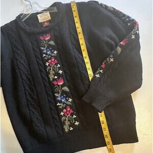 Susan Bristol Vintage Hand Embroidered Wool Sweater Womens Sz 40 (Medium) Black