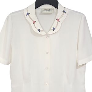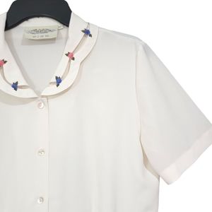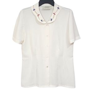 Susan Bristol Vintage Semi Sheer Short Sleeve Ivory Button Down Women Size 6