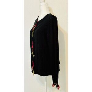 Susan Bristol Women Size L Black Vintage Button Front Embroidery Cardigan Boho