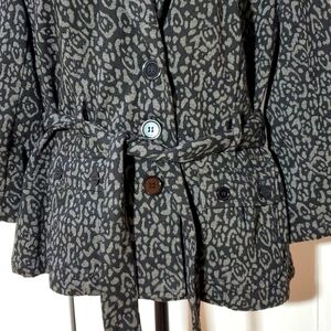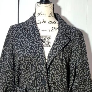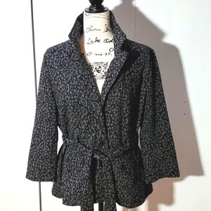 Susan Bristol- Womens Dark Gray Black Soft knit Belted Geometric Print coat Sz.L