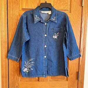 Susan Bristol Women's Embroidered Denim Shirt Jacket Blue Size S Vintage