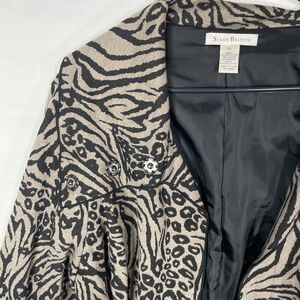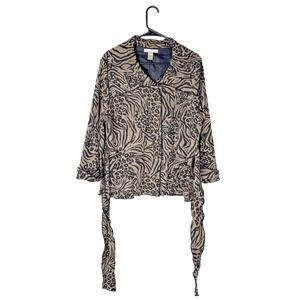 Susan Bristol Womens Jacket Brown Animal Cheetah XL Knit Belted Lined Mob Wife