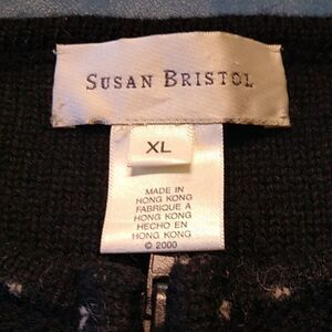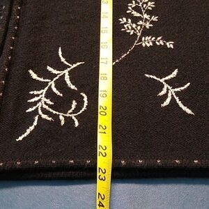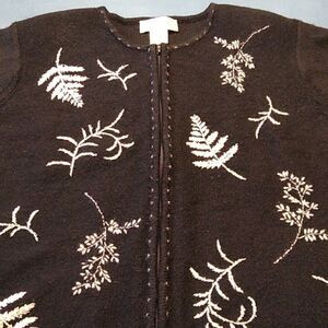 Susan Bristol Women's XL Wool Black Hand Embroidered White Leaves Cottagecore