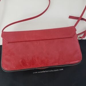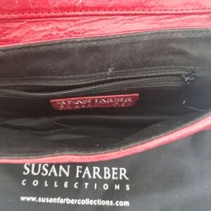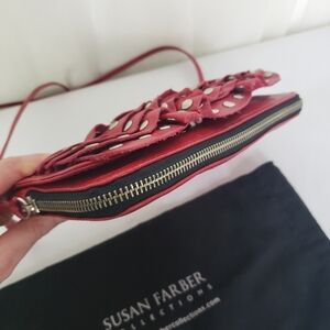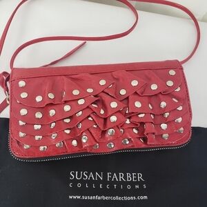 Susan Farber Collections red leather studded crossbody bag ruffled zipper