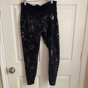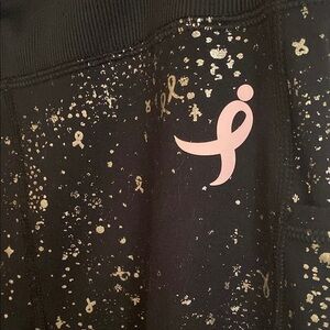 Susan G Komen Breast Cancer Leggings With Side Pockets October we wear pink in great condition! Worn once for a little bit. Gold splatters with little gold ribbons throughout the design. Side pockets for your phone or keys, or really anything! Big thick top band. October s Breast Cancer Awareness Month great for a 5k Race for the Cure or other fundraising events.