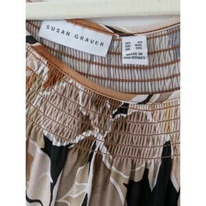 Susan Garver Womens Brown Tan Floral Blouse 3X Lightweight Flowy Half Sleeves