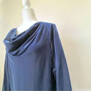 Susan Gravel Blue Velour Top Pullover Cowl Neck Grandmacore Y2K Size Medium