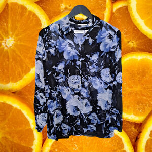 Susan Graver 2 Piece Blue Sheer Button Up and Sleeveless Blouse Size 2