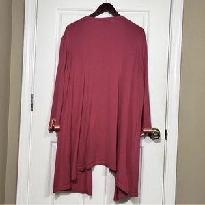 Susan Graver 2X Plus Size Pink Magenta Asymmetric Hem Cardigan Sweater Crochet