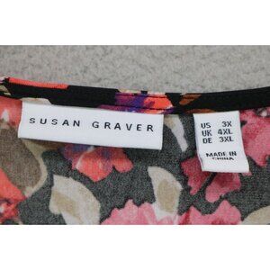 Susan Graver 3/4 Sleeve Dark Floral Tunic-Size 3X-Whimsigoth. Item is in Excellent Condition. The material is 95% Polyester and 5% Spandex. Laying flat measuring armpit to armpit it is 29'' and 31.5'' in length.