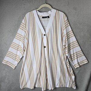 Susan Graver 3X Button Front Cardigan V Neck White Beige Long Sleeve