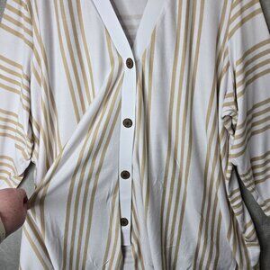 Light weight cardigan, beige and white stripes with V neckline and button front
