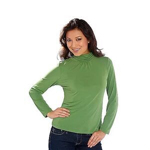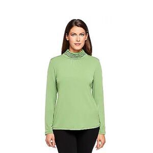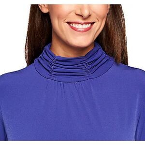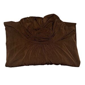 Susan Graver 3X Essentials Liquid Knit Ruched Neck Long Sleeve Top Brown NWT