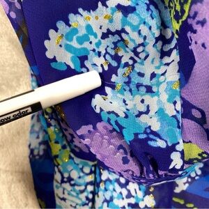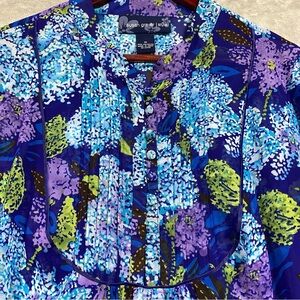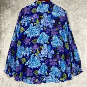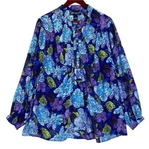 Susan Graver Abstract Floral Pintuck Sheer Popover Blouse Size 1X Glitter