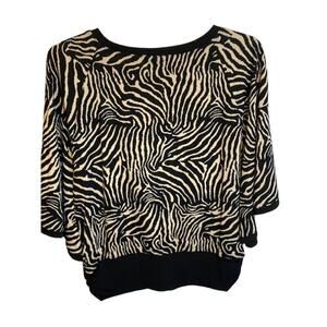 Susan Graver Animal Print Raglan Below Elbow Sleeve Womens Sweater XS