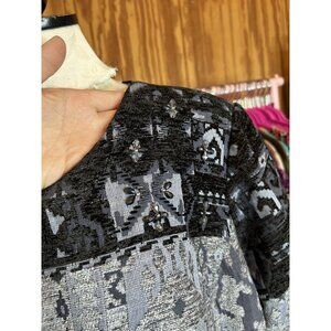 Susan Graver Artisan Jacket 26W Black Velvet Geometric Snap Button Art NWOT
