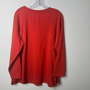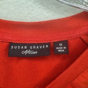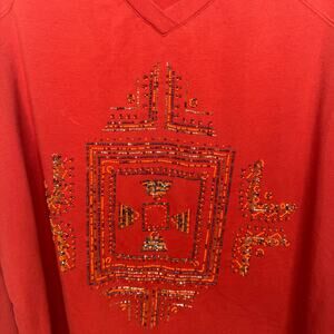 Susan Graver Artisan Red Beaded Geometric V-Neck Long Sleeve Top 1X