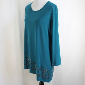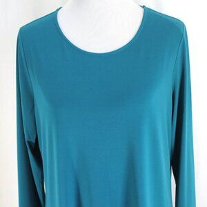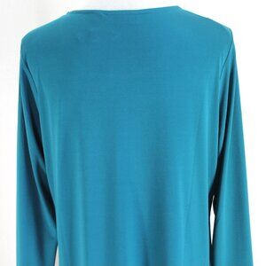 Susan Graver Artisan Top Womens Size M Teal Asymmetrical Long Sleeve Liquid Knit