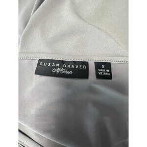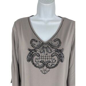 Susan Graver Artisan Womens S Gray Embellished V-Neck 3/4 Sleeve Chiffon Blouse