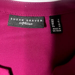 * Title: Susan Graver Artisan Womens Small Fuscia Jeweled Shoulder V- Neck Blouse Career
