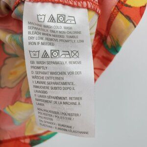 Susan Graver Asymmetrical Hem Coral Floral Flower Beachy Boho 3/4 Sleeve Shirt M