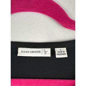 Susan Graver Black Lace Trim Cotton Blend T-Shirt L