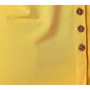 Features: short sleeves, scooped front neckline, back V-neckline, center back faux and functional button placket, straight hemline